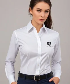 - Kiểu dáng: Cổ bẻ truyền thống, tay dài, form dáng suông nhẹ, phù hợp với mọi vóc dáng